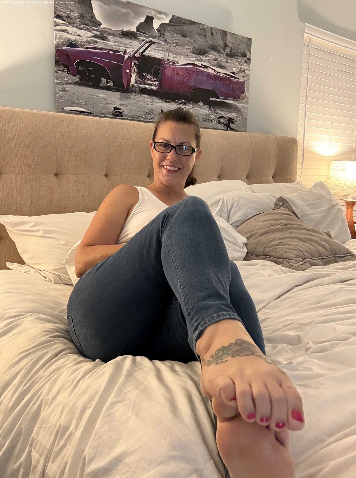 stripping down to take you and your HARD cock on my bed!!