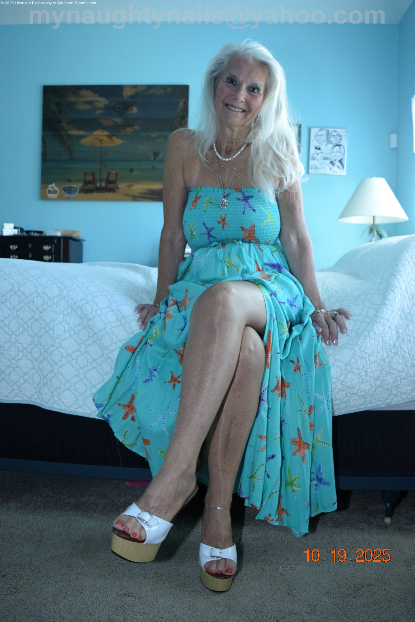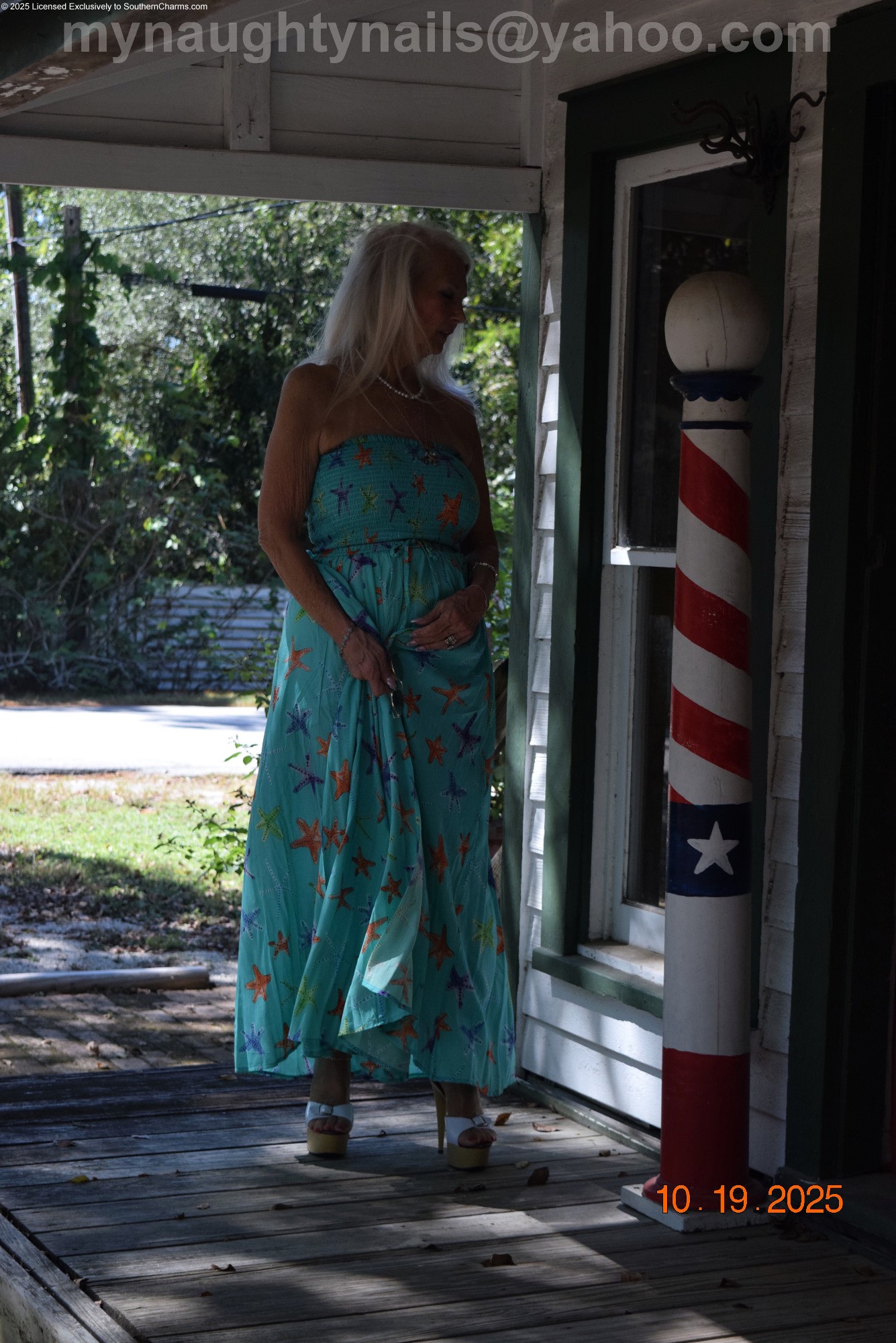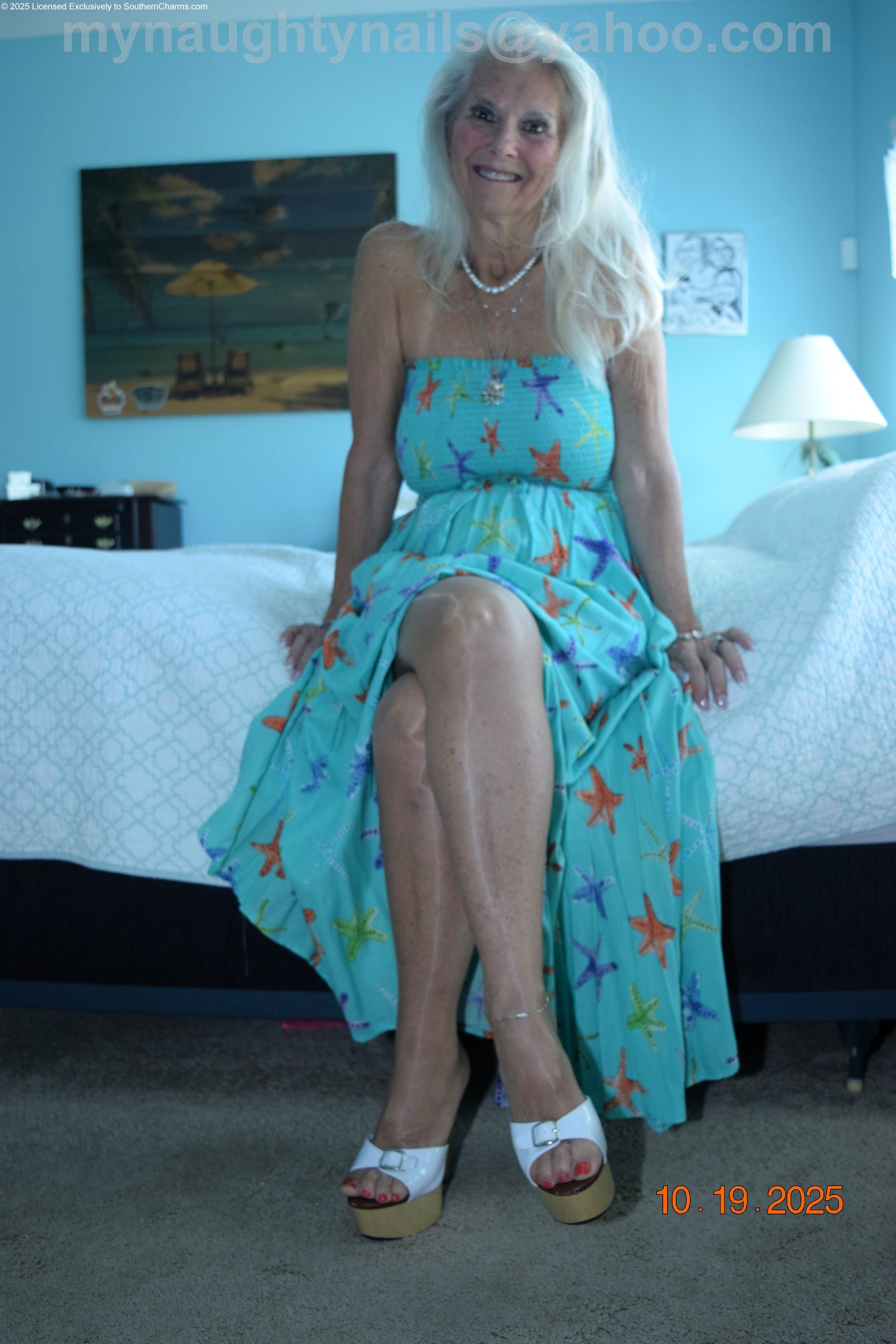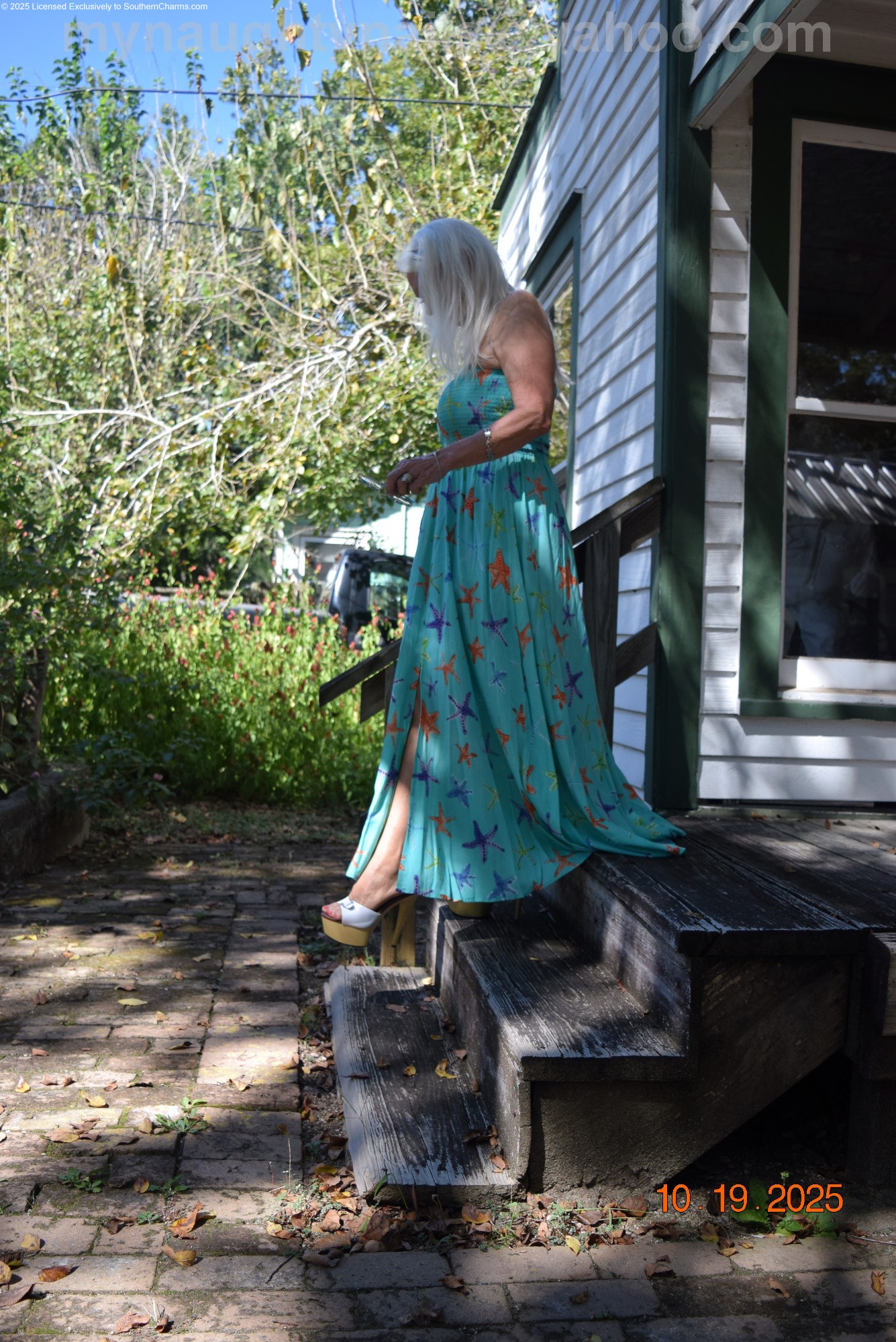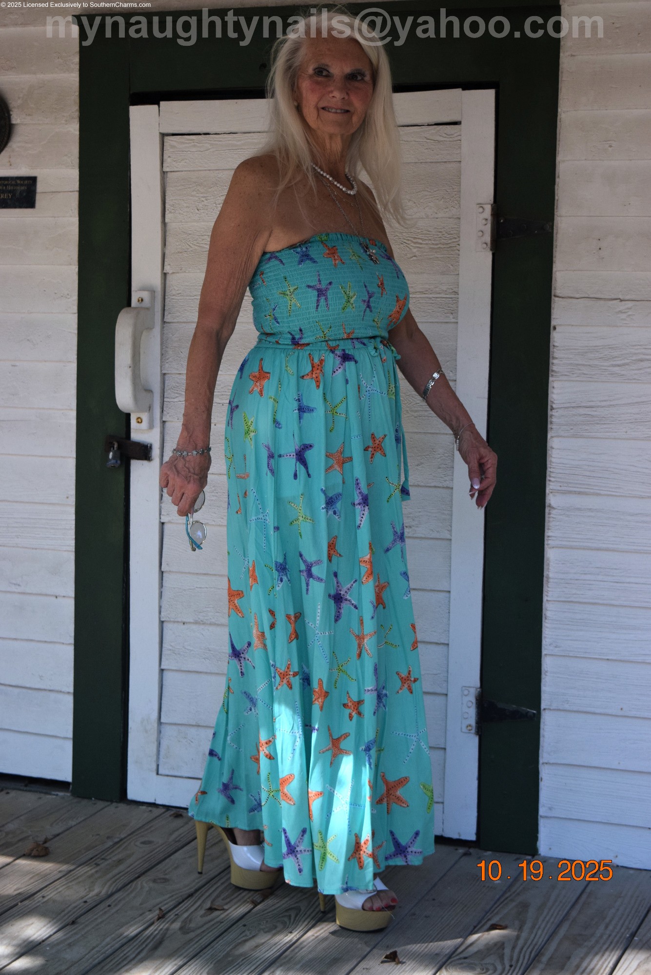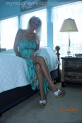 stockings held up with my 8 strap white garter. Over the stockings I wore my delicate gold