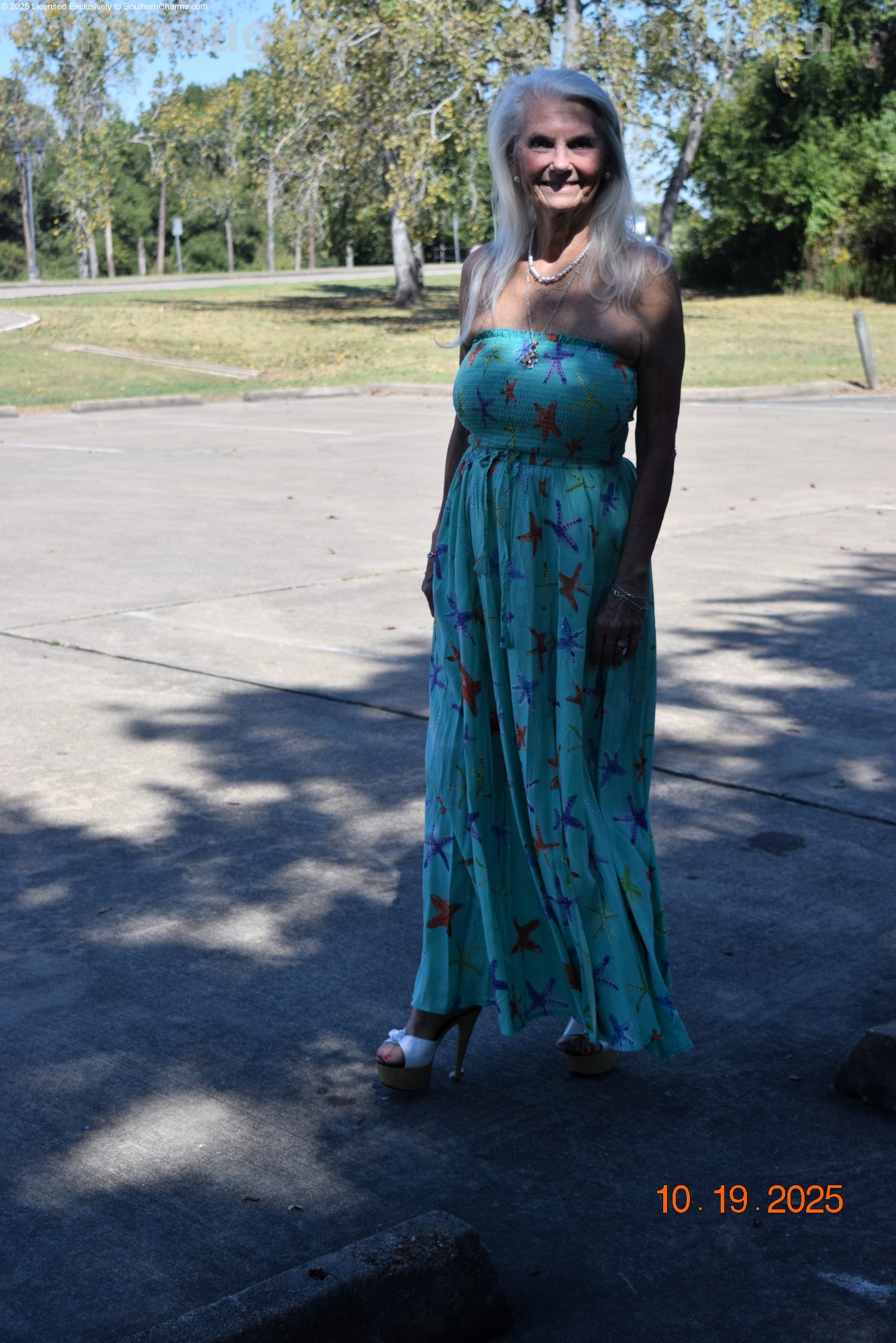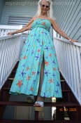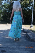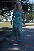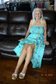 bra and a nice long dress with side split. Under I had on very nice and very high shine